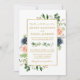 Modern Elegant Watercolor Eucalyptus Greenery Pink Roses Dusty Blue Roses Gold Frame Wedding Invitation - Dusty Blue Back