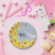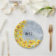 Dusty Blue Watercolor Sunflowers Monogram Wedding Paper Plate