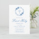 Dusty Blue Watercolor Wreath First Communion Invitation