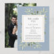 Featuring delicate watercolor greenery on a dusty blue background, this chic botanical wedding announcement card can be personalised with your special photo and wedding day details. Designed by Thisisnotme©