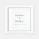 Simple, minimalist and chic Wedding napkin features a modern design with a double framed border in trendy dusty blue on a crisp white background. This modern simple design provides timeless, classic sophistication. Personalize names of couple and event date in elegant blue lettering and script. These are a perfect accompaniment for any wedding party! Be sure to see the collection link on this page to view all of the matching items! Please direct questions or custom requests to invitationsuites@gmail.com.