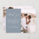 Budget Wedding Thank You Cards that have a photo on the front and back. The Thank you cards contain a modern hand lettered cursive script typography that are elegant, simple and modern to use after you wedding day celebration.