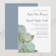 This design features dusty blue wedding hydrangea invitation, with rustic floral bouquet minimalist minimal, a romantic minimalist k023, with watercolor floral foliage, a simple elegant calligraphy script, a modern calligraphy typography lettering, an elegant modern floral, great for spring summer fall, a garden greenery succulent flower, with a watercolor light white country style