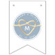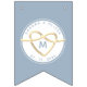 Simple, elegant, minimal, modern dusty blue wedding bunting flags, with monogram and gold rope heart.