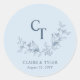 Elegant dusty blue wedding monogram sticker ideal as wedding envelope seal and/or favour labels. Design with exquisite fine hand-drawn botanical details showcasing your initials. Design in dusty blue to compliment this collection's white envelopes. Ability to add any text or message you like. Part of our "Modern Elegant Typography Blue Wedding" Collection with various coordinating products available including envelopes. Visit the entire collection here: https://www.zazzle.com/collections/modern_elegant_typography_blue_wedding_collection-119316758339581837