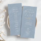 Elegant minimalist dusty blue wedding program featuring romantic gold rope heart and delicate calligraphy script. Includes ceremony timeline and bridal party details. A perfect match for the full Dusty Blue Wedding Suite. For edits or questions, contact: bpkolman@gmail.com