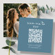 Make your wedding RSVP process seamless, with our RSVP QR code enclosure card. This compact customisable card features modern white lettering with a classy dusty blue background. The front includes a customisable text area and a space to generate a unique QR code for guests to easily RSVP through their smartphones. Go the the "personalise" option, add your wedding website URL to the area provided, and a QR code will generate on the design just for you. On the reverse side, add a personal touch with a photo. Make your special day even more memorable with this chic and functional wedding enclosure card.