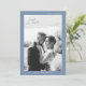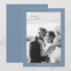 Dusty blue wedding Save the Date card designed for a romantic spring or summer celebration. This elegant photo announcement blends modern minimalist aesthetics with soft dusty blue tones, perfect for the timeless bride planning a garden, coastal, or classic wedding. Style it with handmade envelopes, delicate florals, and calligraphy details for a refined wedding stationery suite.