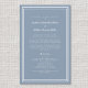 Elegant, minimalist dusty blue & white budget wedding ceremony program features a simple modern design with a double framed border in crisp white on a trendy dusty blue background. Traditional, classic wording provides timeless sophistication. Personalise wedding ceremony details for your guests in trendy script & lettering. The back of the card matches with white lettering on a dusty blue background and is all about your wedding party. For optimal results replace template details with your own details leaving space between paragraphs as in the example. Capitalise & use all lower case where specified. Feel free to contact me at invitationsuites@gmail.com or with the message feature if you have questions regarding this or any of our products or have a custom colour request.