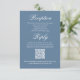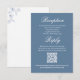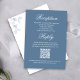This wedding RSVP card features a soft dusty blue palette with watercolor floral accents and delicate greenery for a romantic, timeless look. Elegant calligraphy script pairs with clean typography to create a beautifully simple yet refined response card. With a convenient QR code for quick online replies, it coordinates perfectly with your wedding reception stationery and modern invitation suite.