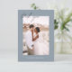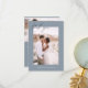 Dusty Blue Wedding Thank You Cards that have a photo pictures and text on the front and back. The Thank you cards contain a modern hand lettered cursive script typography that are elegant, simple and modern to use after you minimalist simple wedding day celebration.