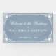 Am elegant wedding welcome banner with a vintage air, with dusty blue and white wedding colours.