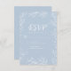 Dusty Blue White Botanical Leaves Wedding RSVP Card