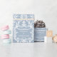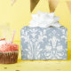 A dusty blue and white damask wedding wrapping paper with the bride and groom's name and numeric wedding date with Congratulations on the wrapping paper.