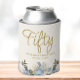 Dusty Blue White Floral 50th Birthday Name Can Cooler