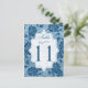 This stylish and modern powder blue, marine blue, and white vintage floral damask table number postcard has large dark blue peony or rose type flowers on a grungy damask background that matches the wedding invitation shown below. ****YOU MUST change the number 11 to each number that you need, add it to your cart, and then come back and repeat the process with each number that you need. Quantity discounts may apply once you add all the items to your cart. If you have any questions, or need help with anything, contact niteowlstudio@gmail.com.