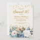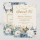 Dusty Blue White Floral Gold Glitter Sweet 16 Invitation