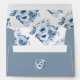 For winter wedding invitations, save the dates or thank you cards. Outside: dusty blue background. Inside: A chic white background colour and watercolored roses, flowers in shades of blue. Back Templates for names and address. White coloured letters.
