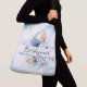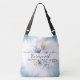 This stylish crossbody bag showcases a delicate arrangement of dusty blue, white, and gold watercolor florals, making it a charming accessory for a wedding or any special occasion. The design features the word "Bridesmaid" in an elegant script, making it a thoughtful and personalised gift for your bridal party. Its adjustable strap offers comfortable, hands-free wear while adding a touch of romantic flair to any outfit.