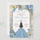 Quinceañera Dusty Blue & White Silver Crown Invitation