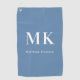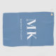 A modern dusty blue background. Personalise and add a name and monogram initials. The name is written in white with modern block letters.