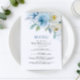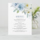 Dusty Blue & White Rose Flowers Wedding Menu