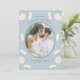 Dusty Blue White Rose Wedding Photo Save the Date Invitation