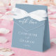 This chic dusty blue wedding favour box exudes tranquillity for a summer coastal reception by the sea. Personalise this light grey box with elegant minimalist white typography to match your serene bridal colour scheme.
