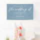 This dusty blue banner exudes tranquillity for a summer coastal wedding by the sea. Personalise this light grey blue decor with elegant minimalist white typography to match your serene bridal colour scheme.