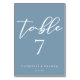 This dusty blue table number exudes tranquillity for a summer coastal wedding by the sea. Personalise this light grey blue decor with elegant minimalist white typography to match your serene bridal colour scheme.