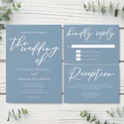 Dusty Blue White Typography Coastal WeddingDesigned by Elisha Seybold