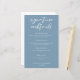 This dusty blue wedding signature cocktails menu exudes tranquillity for a summer coastal ceremony by the sea. Personalise this light grey blue menu with elegant minimalist typography to match your serene bridal colour scheme.