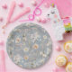 Featuring an all-over pattern of delicate watercolor wildflowers and blossoms, these plates are set against the sophisticated dusty blue background of your suite. The soft, gender-neutral color palette and intricate floral design perfectly capture a rustic, whimsical, or elegant party aesthetic.