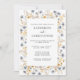 This Dusty Blue Wildflower Budget All-in-One Wedding Invitation showcases stunning watercolor wildflowers in shades of dusty blue and yellow, complemented by contemporary typography. It is fully customisable, allowing for the inclusion of the couple's names and wedding details, with reception, hotel, and RSVP information on the reverse side. The formal design and wording will add a touch of elegance to your wedding celebration.