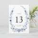 Boho Dusty Blue Wildflower Elegant Simple Winter Garden Wedding Table Numbers.