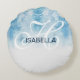 Dusty Blue Winter Script Calligraphy Monogram Round Pillow | Best gift for her