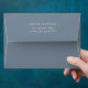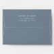 Chic dusty blue colour outside with return name and address on the back wedding envelope. Coordinating invitations and mailing accessories can be found in this collection.