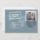 Dusty Blue World Map Destination Wedding Photo save the date invite