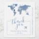 A dusty blue watercolor world map with a heart you can move to your wedding destination on a custom thank you label to put on travel theme wedding or party wine favours and bridal party gifts. Click CUSTOMIZE FURTHER and click on the heart layer to move it anywhere on the globe image or change text colours or placement. Wine labels are a great thing to take on a destination wedding if you are able to purchase the wine or liquor gifts at your wedding location because you don't have to carry much more than a few sheets of paper with you and DIY the labels when you get there!