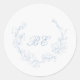 Dusty Blue Wreath Monogram Elegant Wedding Classic Round Sticker