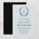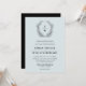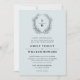 A hand drawn wreath of leafy branches frames the couple's two-letter monogram while elegant type allows for maximum flexibility between formal or casual wording all while forever classic, dusty blue feels sophisticated and timeless when paired with rich black.