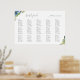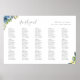 Elegant dusty blue and yellow botanical floral arrangements, wedding seating plan poster.