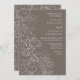 This elegant wedding invitation features a delicate floral ornamental design with flowers, birds and leaves on a dusty brown grey background. The text combines handwritten script and serif fonts for a stylish and modern look. Perfect for a winter or autumn fall wedding.