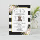 Dusty Floral Stripe Boho Bear Cub Baby Shower Invitation