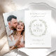 Experience sophistication with this elegant and modern rustic Save the Date invitation, adorned with watercolor greenery leaves and delicate white flower blooms arranged in a delicate wreath. Personalise the invitation further with a couple's photo included on the back.