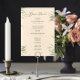 This stylish wedding menu design has dusty-green foliage on a beige craft paper texture. Customisable, elegant typography in dark green. It is a sophisticated and classy design that you can edit text, images, and fonts. This design evokes a simple elegance.