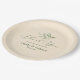 This is a stylish wedding paper plate with dusty green foliage with a beige craft paper texture. Customisable, elegant typography in dark green. It is a sophisticated and classy design that you can edit text, images, and fonts. This design evokes a simple, organic elegance.