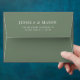Elevate the appeal of your rustic wedding invitations or save-the-date announcements by incorporating these elegantdusty green envelopes adorned with pastel pink and peach roses.