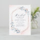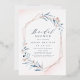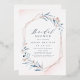 Modern greenery bridal shower invitation featured rustic dusty blue watercolor botanical foliage greenery design with real rose gold foil leaves and geometric frame, simple and elegant.