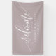 Welcome your guests with this elegant dusty lavender wedding welcome banner. Featuring beautiful calligraphy and a minimalist design, this banner adds a sophisticated touch to your wedding decor. The soft colour and modern script create a warm and inviting atmosphere, perfect for greeting guests as they arrive. Customise with your names and wedding date to make a unique and memorable addition to your special day. This durable banner is ideal for both indoor and outdoor use, ensuring your wedding entrance is stylish and welcoming.